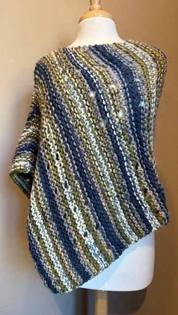 River’s Edge Poncho & Cowl- Two pieces for the price of one! A soft and comfy poncho and a separate cowl to add during chilly weather. Hand knit of machine washable and durable acrylic yarn. One size fits most.